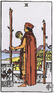 פירוש הקלף: קיפאון זמני במצב מסוים, שביתת נשק, שקט שלפני הסערה, מבוי סתום, חוסר החלטה, סכסוך, קשיים, התנגדות, כרגע הכיוון אינו ידוע, מאבק בין שניים, אין חשק לפקוח עיניים ולהתמודד עם המציאות