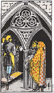 פירוש הקלף: הגמול למאמציו של האדם מועט, בלתי מספק ואף מאכזב. הכסף אינו מספיק לכל מה שהאדם צריך. השואל הינו בעל כוח סבל, פשרן, ותרן מבחינה רגשית . הוא השקיע בעבודתו זמן, כסף ורגשות, אך התוצאות מאכזבות.